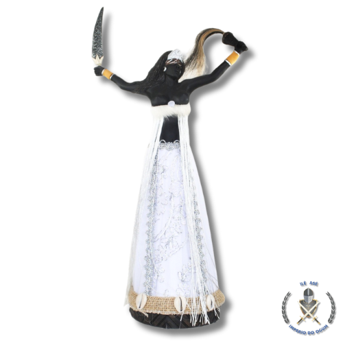 Esta imagem de Iansã / Oyá Ygbalé, com 40 cm de altura, representa a força, a coragem e o domínio dos ventos e das transformações. Oyá Ygbalé manifesta o aspecto guerreiro e determinado de Iansã, ligada à ação, ao movimento e à quebra de energias estagnadas.