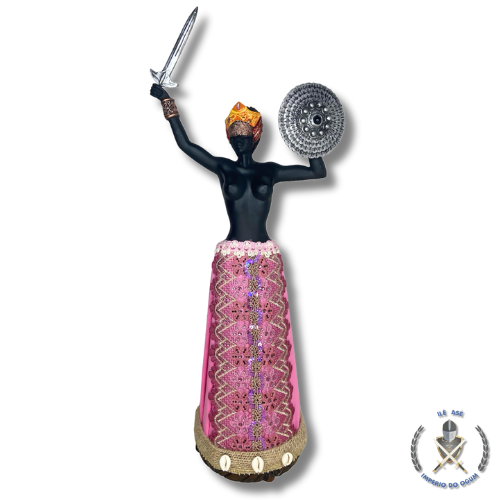 Imagem da poderosa Orixá Obá, conhecida por sua força, coragem e determinação, com 40 cm de altura. Esta escultura apresenta acabamento detalhado, com vestes em tons vibrantes e adornos simbólicos que representam sua energia guerreira e protetora.
